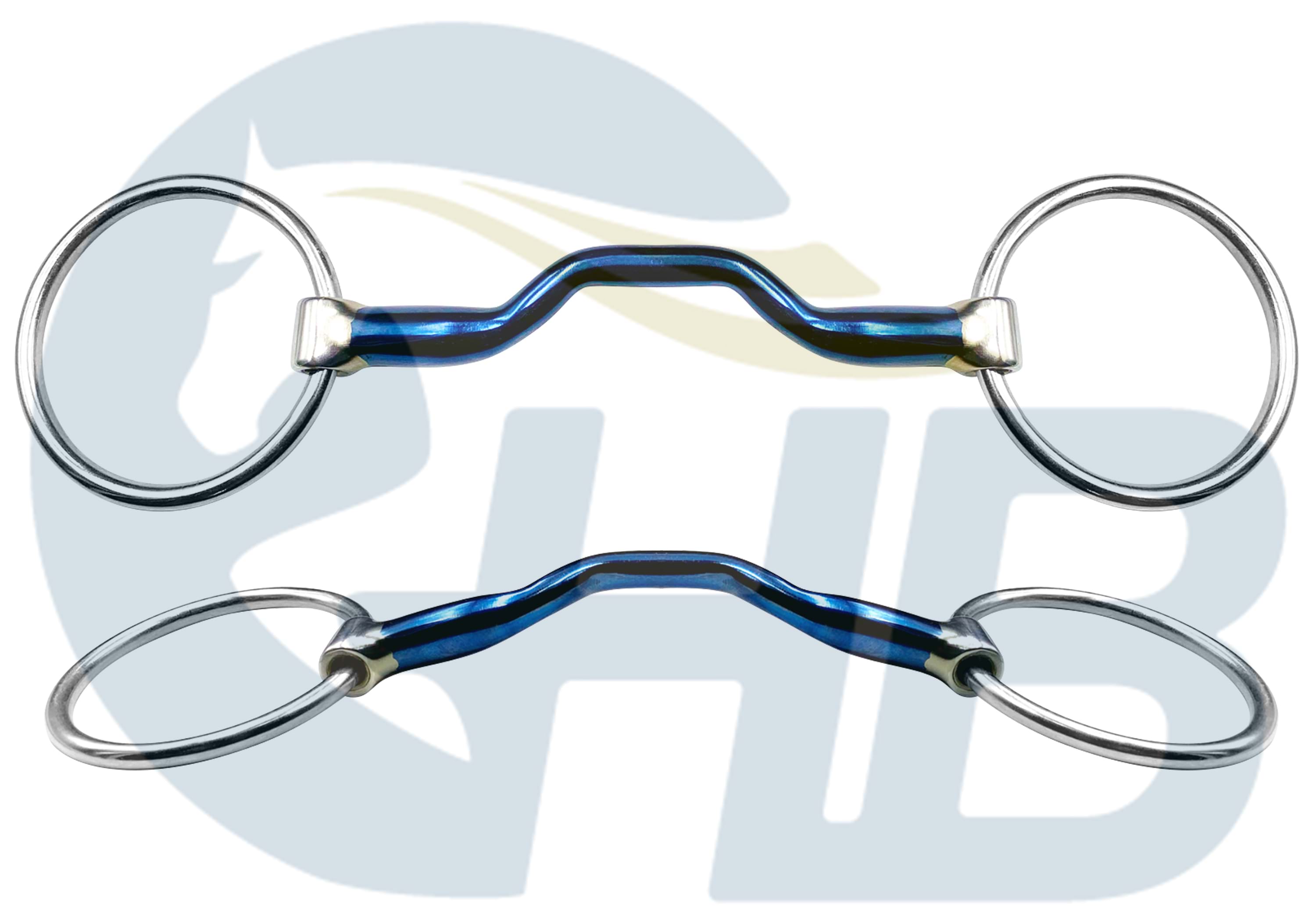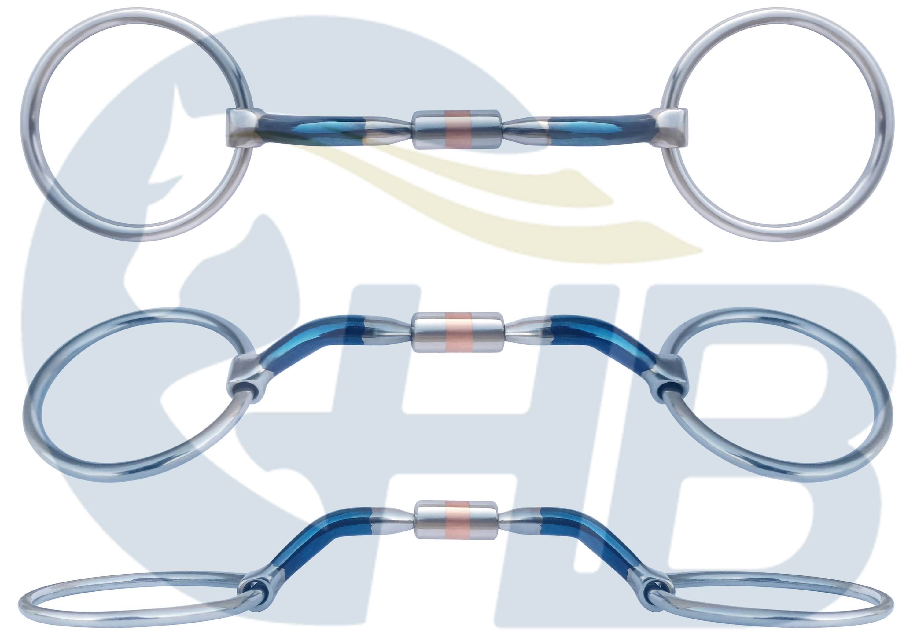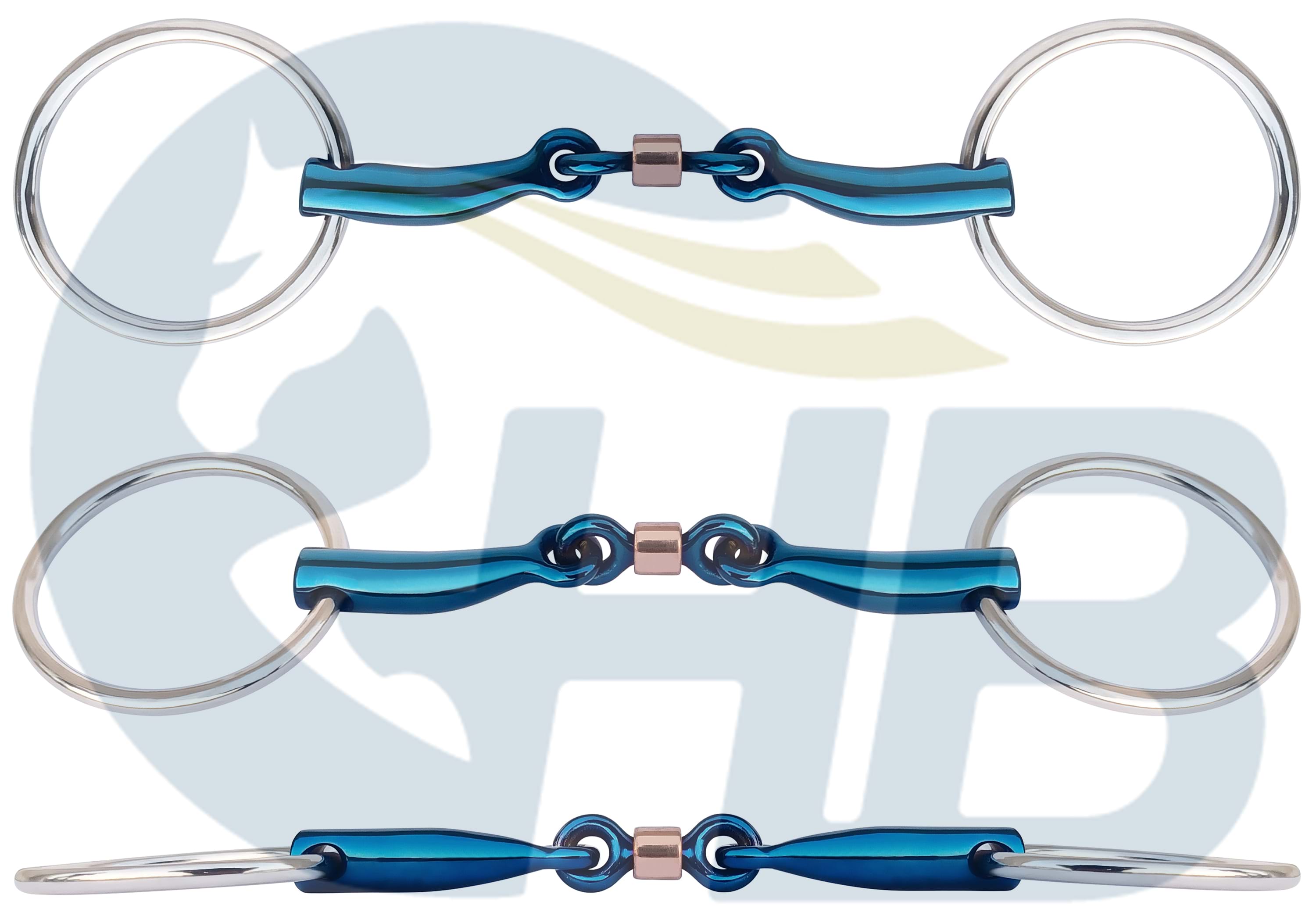 Blue Sweet Iron Ported Mouth Snaffle Loose Ring