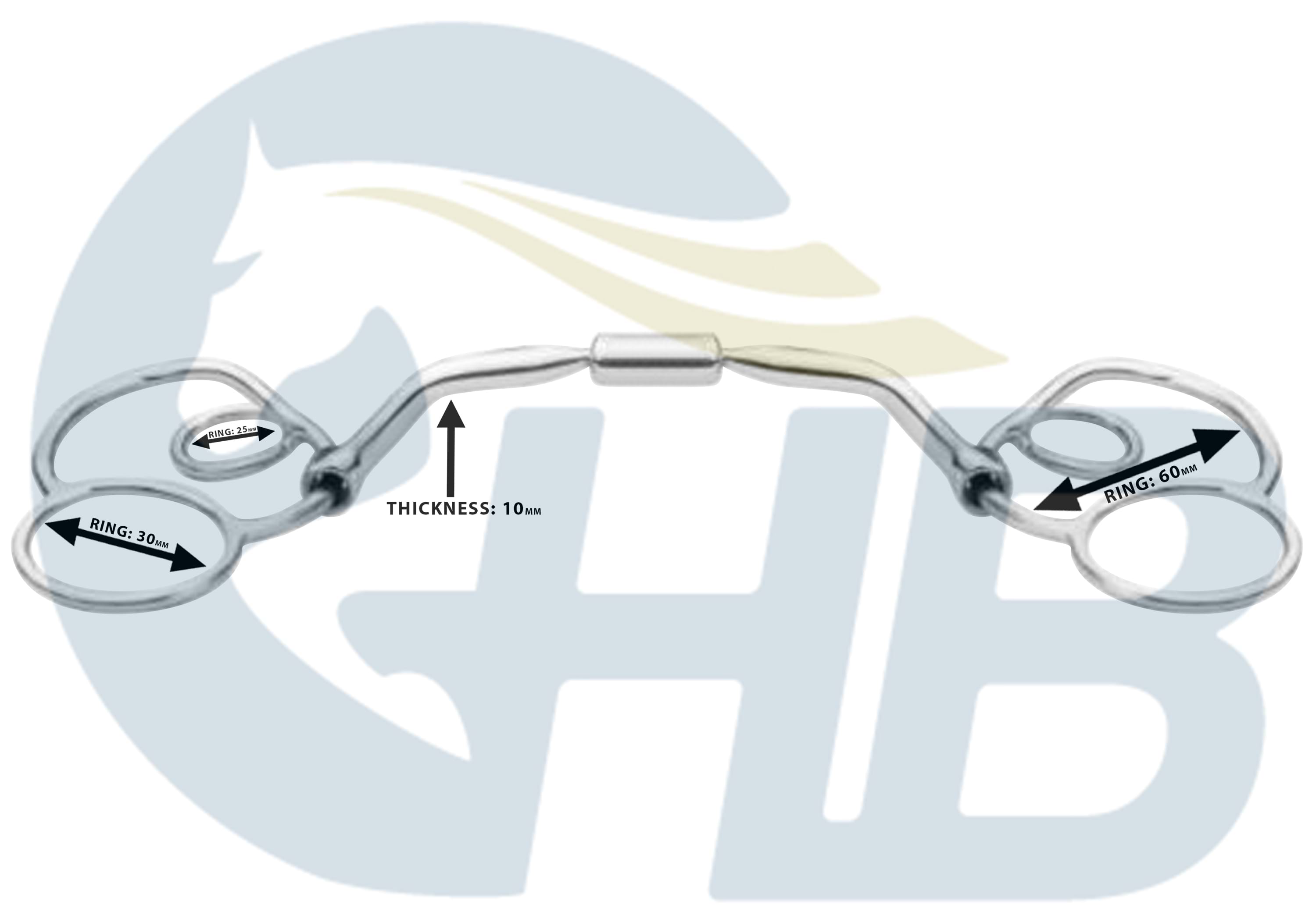 - With the multiple rings this bit can be used as a snaffle with the reins on the middle ring, apply poll pressure with the reins on the bottom ring or it can be used with double reins