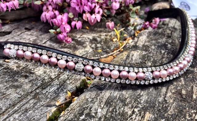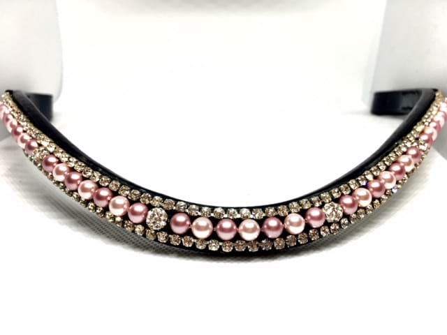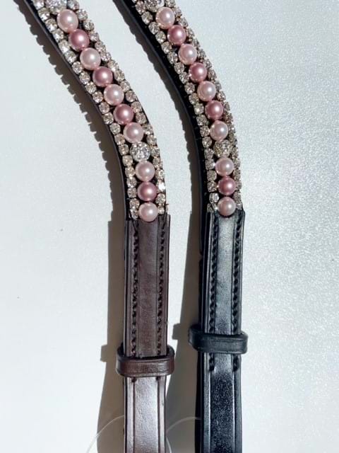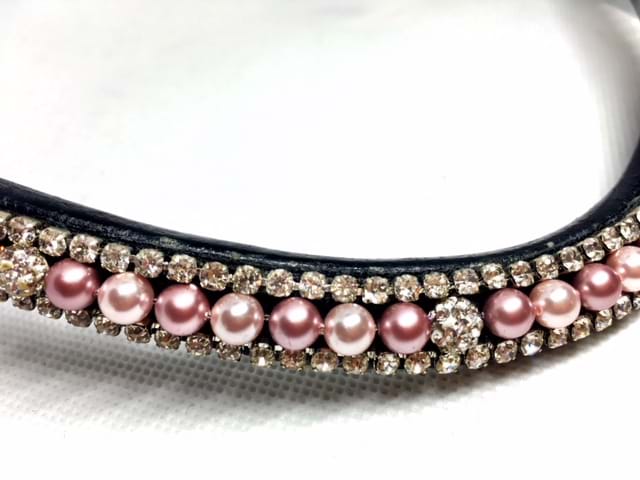Pink Pearl and Crystal Browband - Brown or Black leather