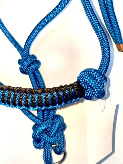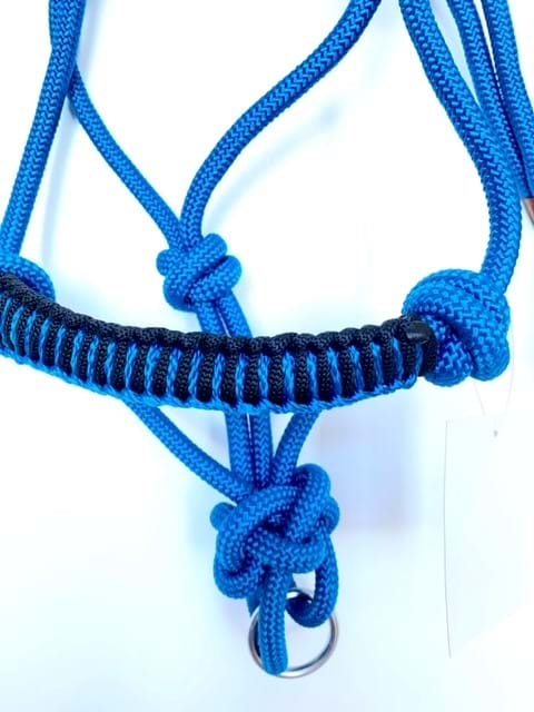 Rope Halter with Lead - Blue with Black Detail