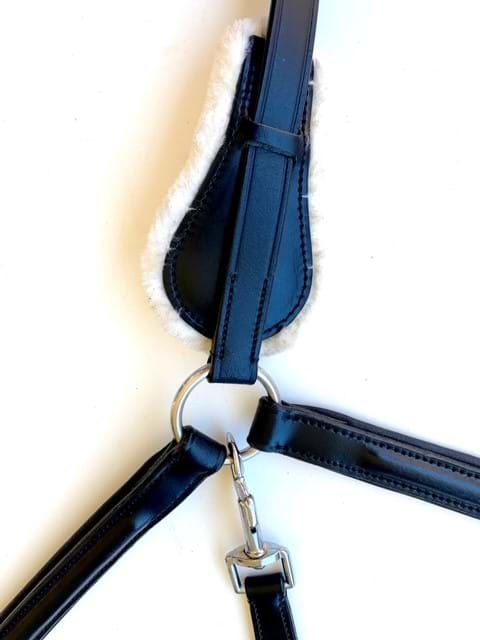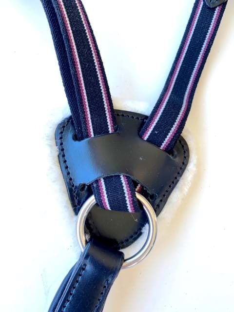 - Brown leather option has brass buckles/rings, brown elastic with red/white stripe