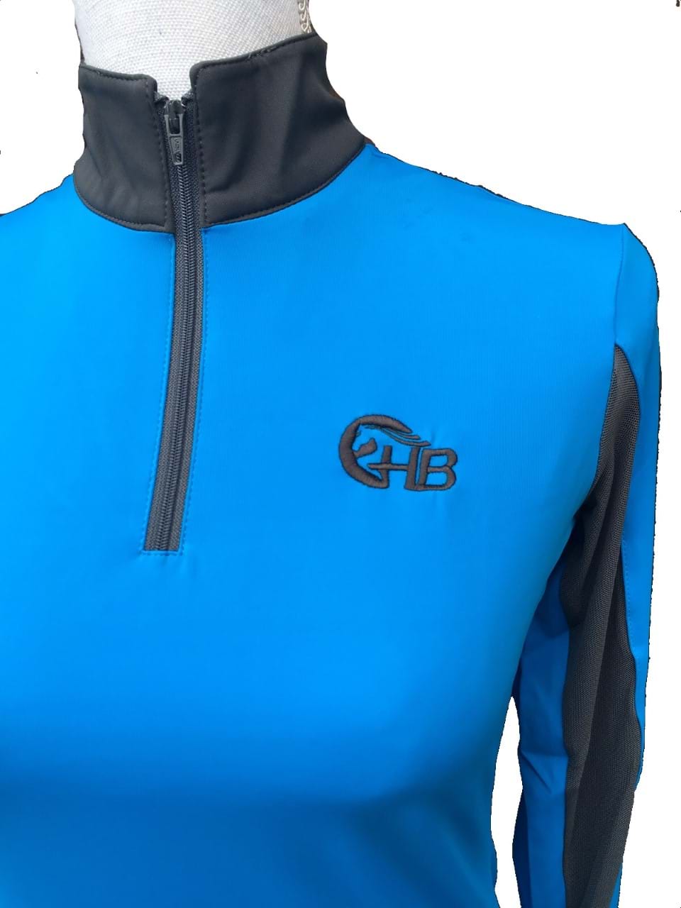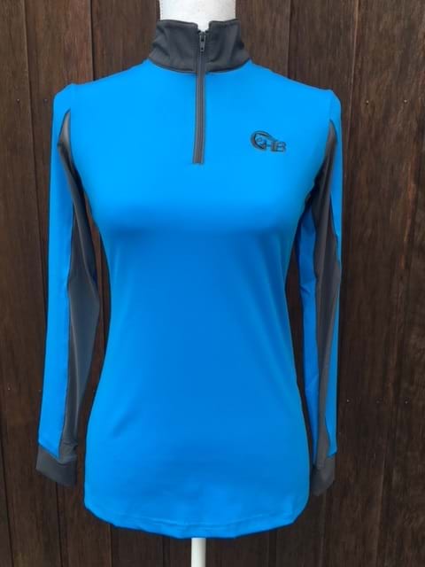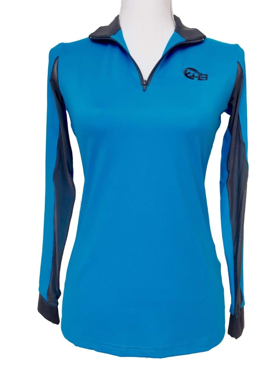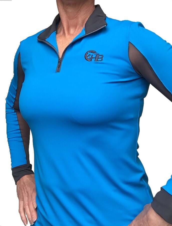 - Available in two grogeous colours - teal or cobalt blue - with contrasting grey collar, cuffs and mesh inserts